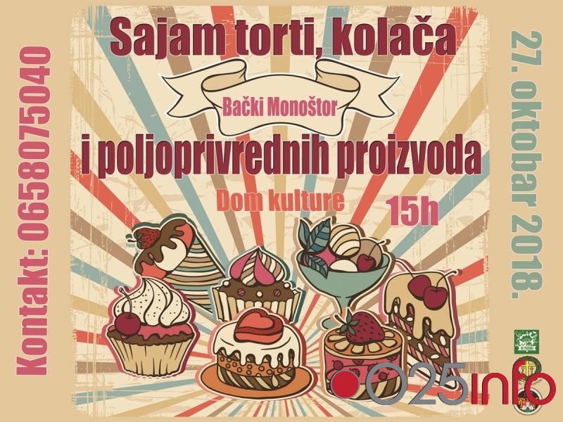Bački Monoštor vas poziva na sedmi po redu Sajam torti, kolača i poljoprivrednih proizvoda, koji će biti održan u subotu, 27. oktobra, sa početkom u 15 sati, u Domu kulture.