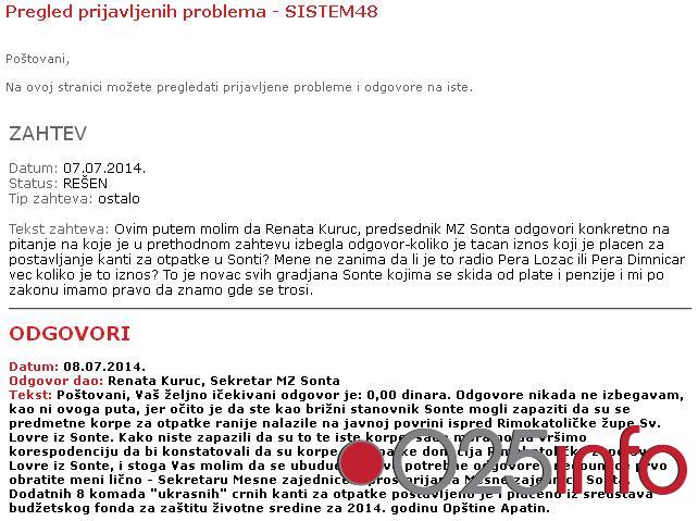 Samo dva dana nakon što smo ukazali na konkretan problem, odnosno na to da je jedan meštanin Sonte koji je postavio pitanje opštinskom Sistemu 48, ostao uskraćen za konkretan odgovor (pogledajte OVDE), dotični je ponovo postavio isto pitanje.
