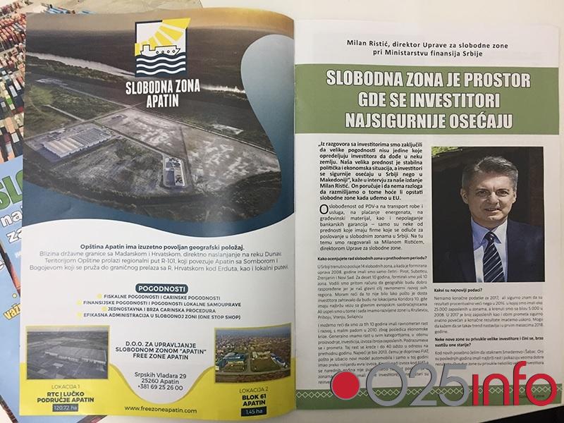 Podsećanja radi, Slobodna zona Apatin specifična je po tome što se prostire na dve lokacije, a područje Robno transportnog centra predstavlja jednu od najboljih grinfild lokacija u ovom regionu i jedinu zonu koja je u funkcionalnoj vezi sa budućom međunarodnom lukom. Izuzetni uslovi za poslovanje apatinske zone, uz afirmaciju Srbije kao poželjne investicione destinacije, dobar su put ka privlačenju investitora i otvaranju novih radnih mesta.