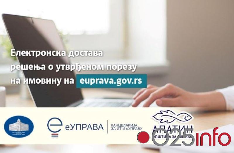 Građani Opštine Apatin koji imaju registrovan profil na portalu eUprava od danas dobijaju elektronsko Rešenja o utvrđenom porezu na imovinu za 2020. godinu putem nove usluge elektronske dostave u svoje Jedinstveno elektronsko sanduče na ovom portalu.