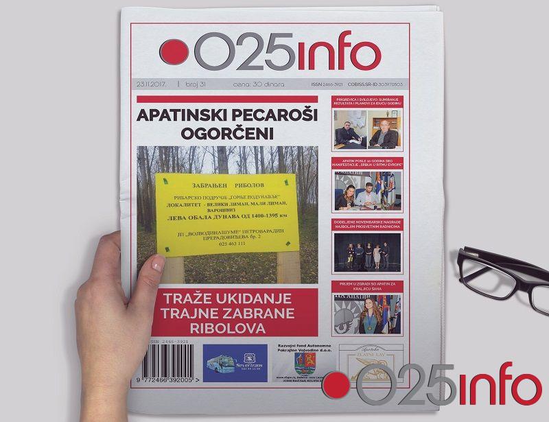 U najnovijem, 31. broju 025info novina saznajte sve aktuelnosti sa teritorije opštine Apatin. Vesti iz oblasti politike, društva, kulture, obrazovanja, sporta. Reportaže, tekstovi na hrvatskom i mađarskom jeziku, pomeni i oglasi.