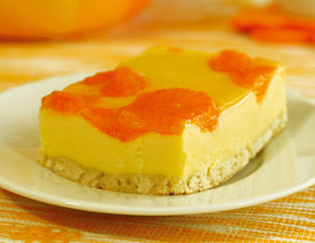 Priprema: Čajne keksiće sameljite. Dodajte maslac i rukama umesite smesu zatim stavite na dno okruglog kalupa prečnika 22 cm. Stavite u frižider dok pripremate fil. Krem siru dodajte šećer u prahu i promešajte. Želatin prelijte limunovim sokom i vodom, zatim ostavite dva-tri minuta da nabubri. Želatin stavite na ringlu i zagrevajte dok se ne istopi zatim ga dodajte u smesu sa sirom. Slatku pavlaku sipajte u odgovarajuću posudu i dodajte šlag u prahu, zatim zajedno izmiksajte. Sjedinite umućenu pavlaku i smesu sa sirom, zatim dodajte seckane breskve koje ste pre toga oljuštili. Rasporedite fil u kalup i vratite na hlađenje. Preliv za kolač spremite po uputstvu sa kesice, ali umesto vode upotrebite 250 ml soka, malo prohladite i prelijte preko fila. Ostavite da se ohladi pre služenja.