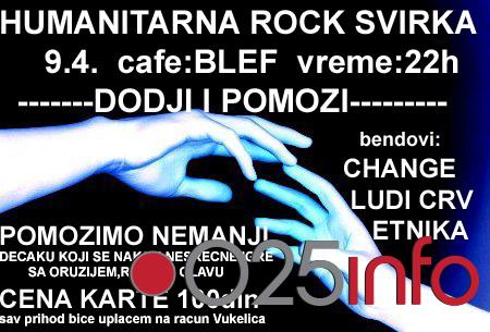 U subotu, 09. aprila od 22 časa održaće se Svirka za pomoć Nemanji Vukeliću u kafe "Blefu". Nastupiće bendovi: Change, Ludi Crv, Etnika.