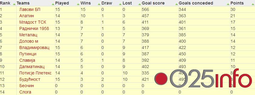 (Tabela preuzeta sa sajta Rukometnog saveza Vojvodine)