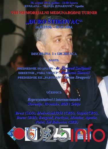 U subotu, 30. avgusta, sa početkom 12 sati, u kuglani Banja Junaković biće održan 8. memorijalni turnir Ðuro Štikovac.