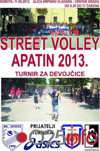 Odbojkaški klub Apatin u subotu, 11. maja organizuje turnir "STEREET VOLLEY, APATIN 2013" za devojčice.