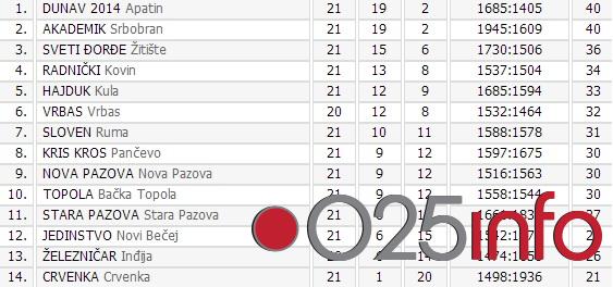 Poraz apatinskog tima iskoristio je Akademik iz Srbobrana koji je na gostovanju u Kuli slavio rezultatom 73:67 i na taj način uspeo da se bodovno izjednači sa Dunavom, pa obe ekipe sada imaju isti skoro od 19 pobeda i 2 poraza.